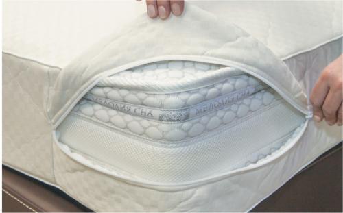 Стеганый на синтепоне чехол из хлопкового жаккарда на молнии. Продлит срок службы матраса, со всех сторон надежно защищая от загрезнений и пыли.