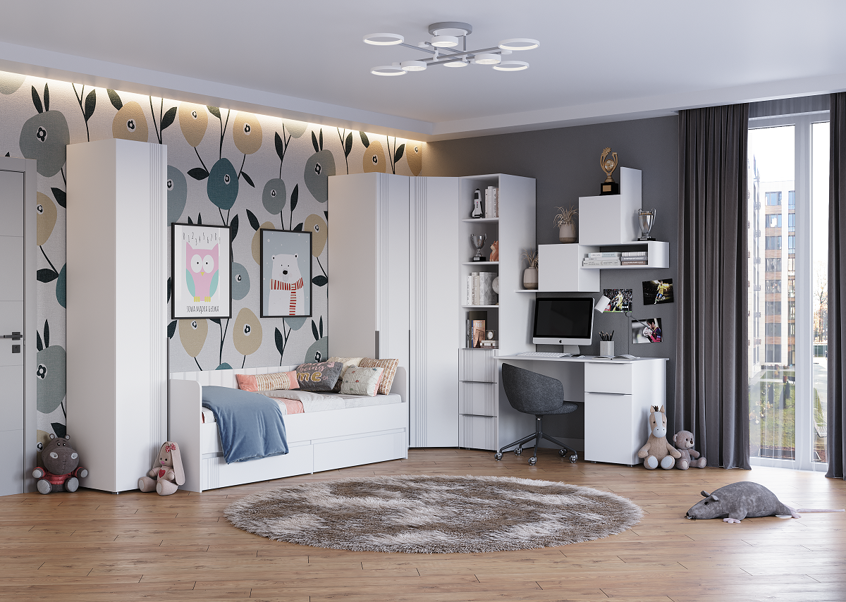Модульная детская Вита (Белый лофт/Софт айс)