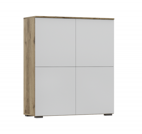 Комод Милан 1 Астрид-Мебель – современный комод, который смотрится оригинально и воздушно за счет необычной формы, отсутствия ручек и светлых тонов. У модуля 4 секции, в каждой из которых установлено по 1-ой полке. Скрыты они за распашными створками с механизмом открывания push to open.