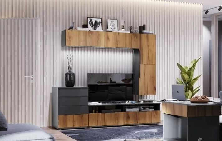 Модульная гостиная Моника Велес (Темно-серый/Дуб золотистый)