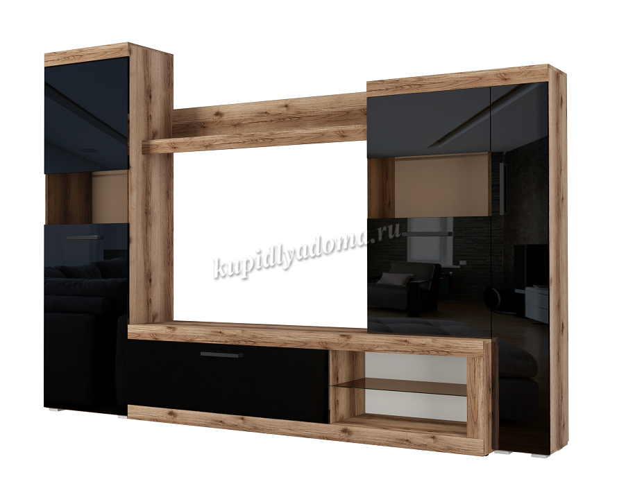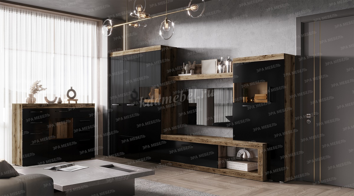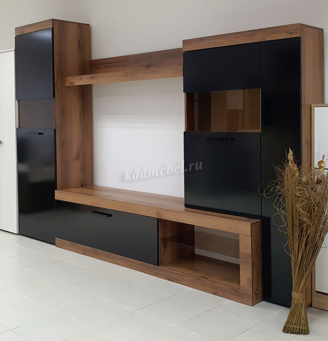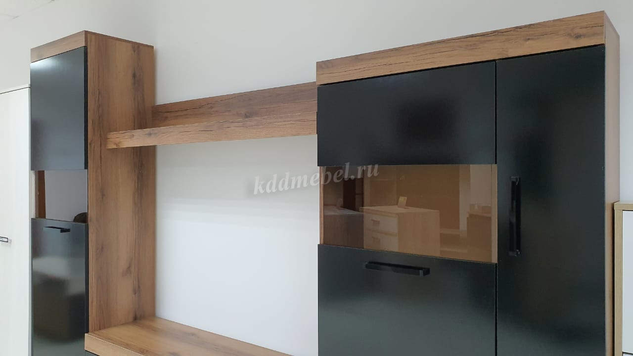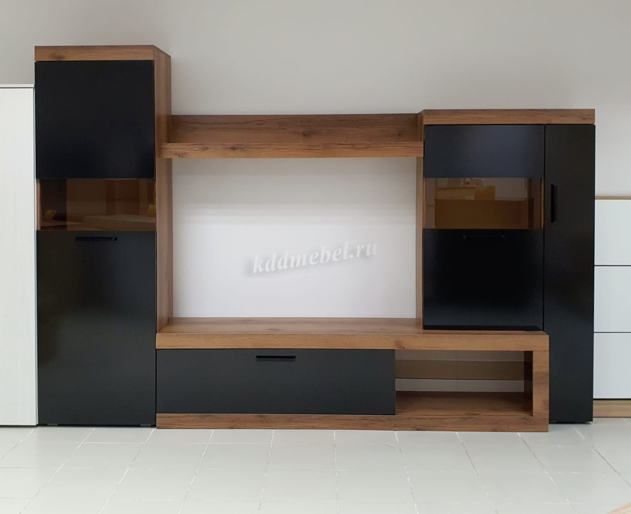 Описание Гостиная Бастон (Дуб делано/Черный глянец)