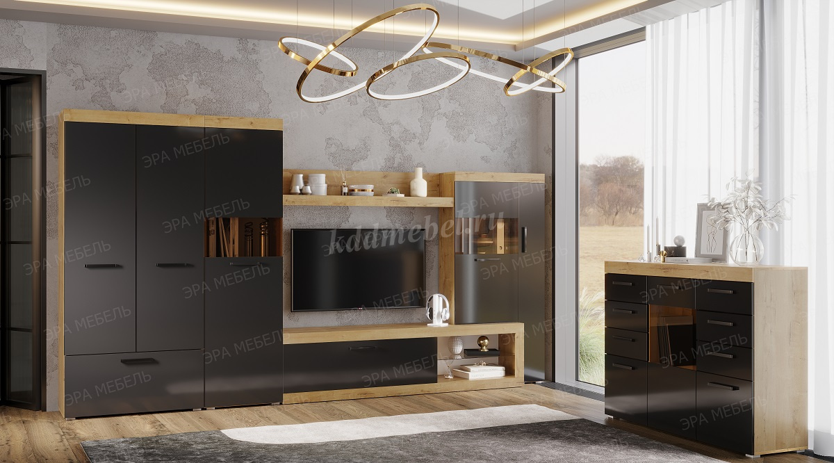 Гостиная Бастон (Дуб вотан/Черный глянец)