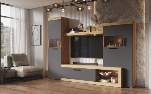 Описание Гостиная Бастон (Дуб вотан/Графит)