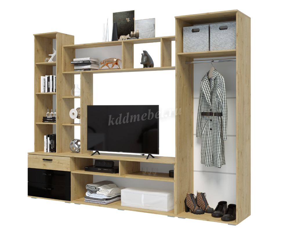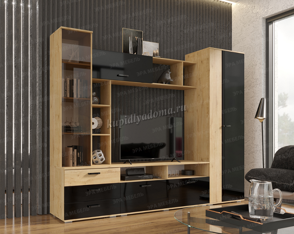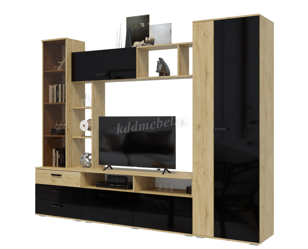Описание Гостиная Крокус (Дуб вотан/Черный глянец)