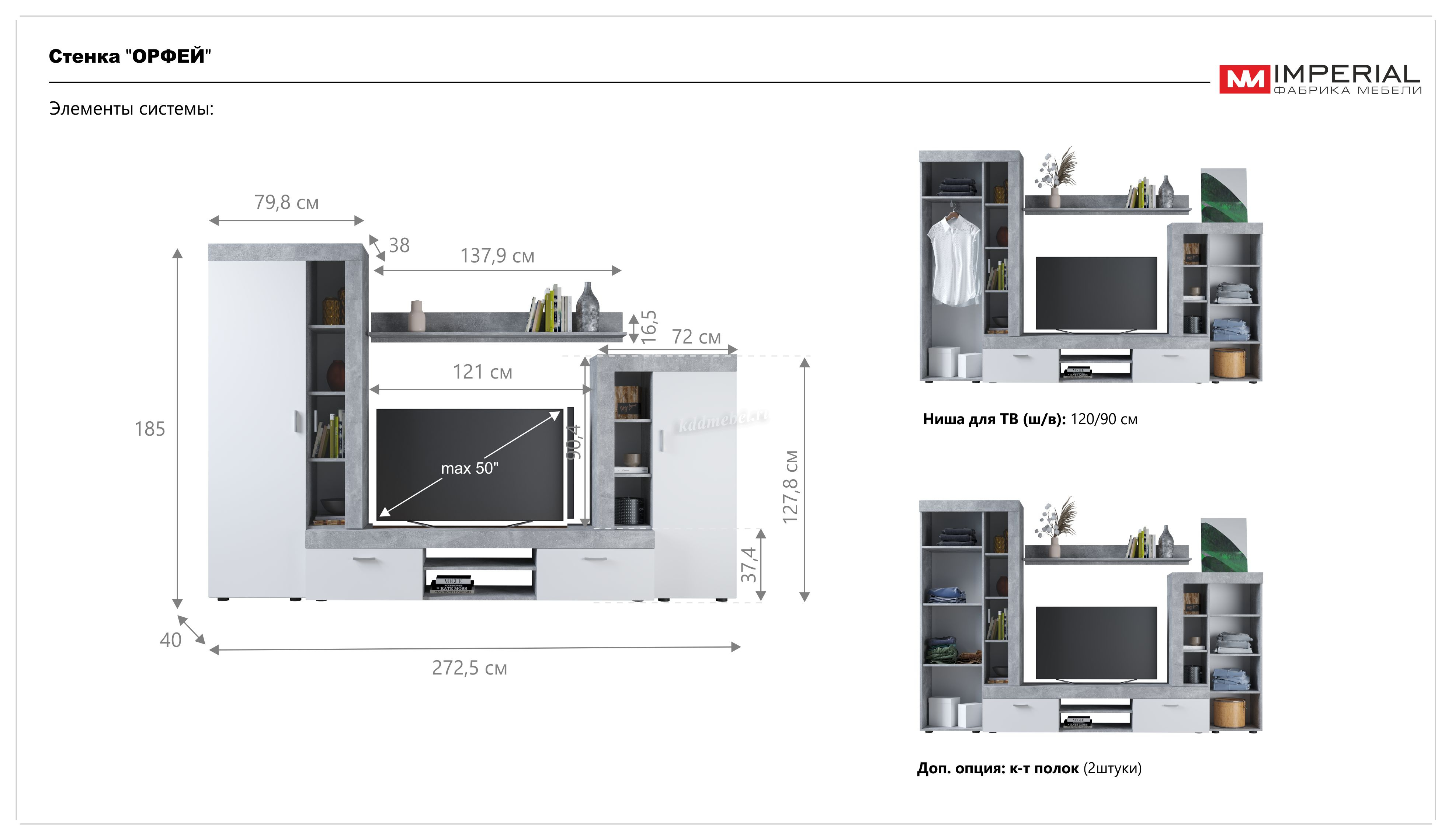 Описание Гостиная Орфей (Ателье светлый/Белый)