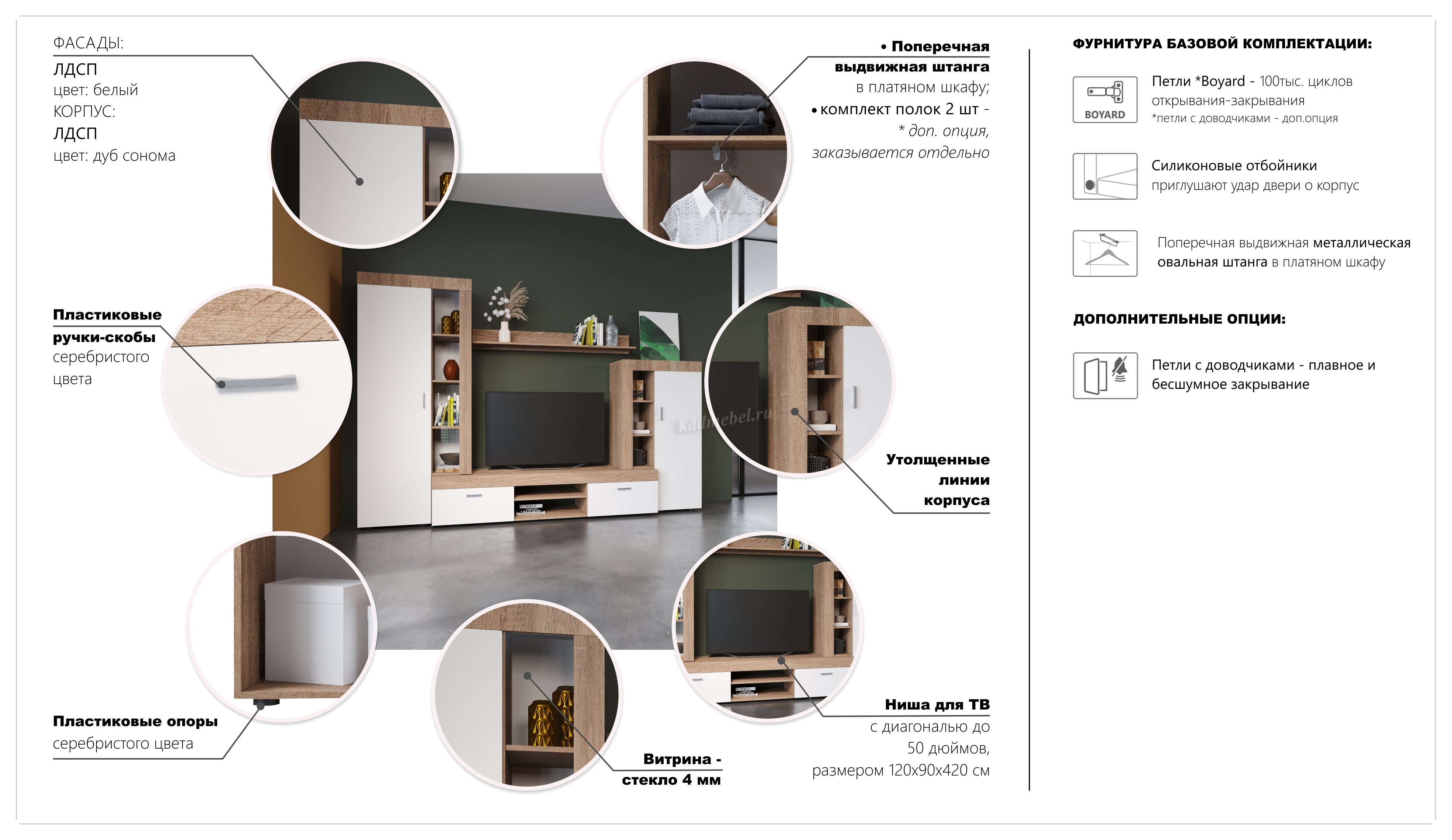 Описание Гостиная Орфей (Дуб сонома/Белый)
