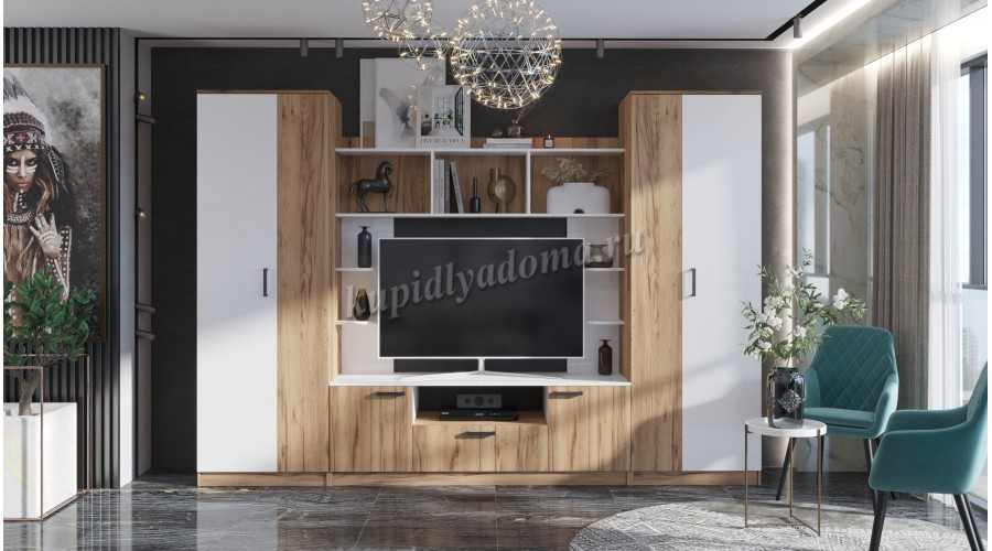 • Гостиная Моди К-2 (Дуб крафт золотой/Белое дерево)