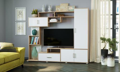 Гостиная Пекин (Дуб сонома/Белый глянец)