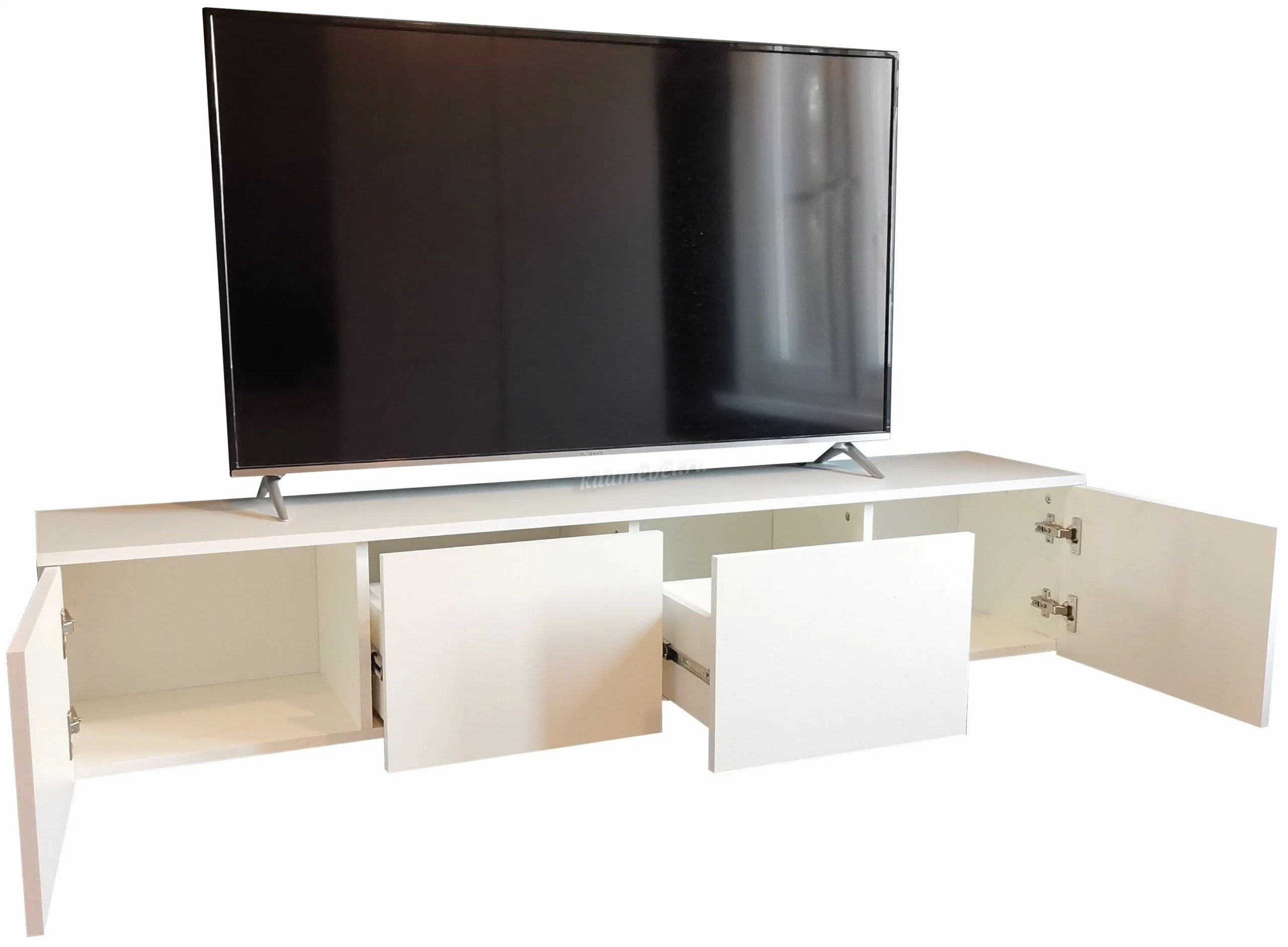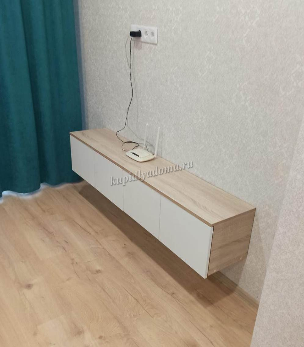 Подвесная тумба с двумя выдвижными, двумя дверками и скрытым навесом.