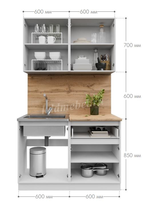 Глубина верхних модулей: 300 мм.
