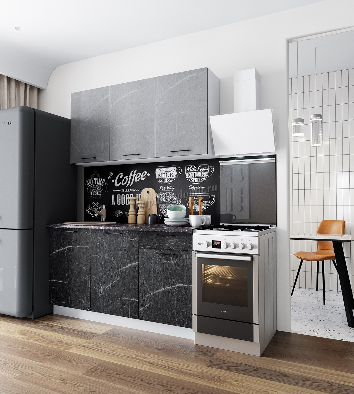 Кухня Марбл 1,5 (Мрамор Лайт/Мрамор Дарк/Столешница Мраморный берег)