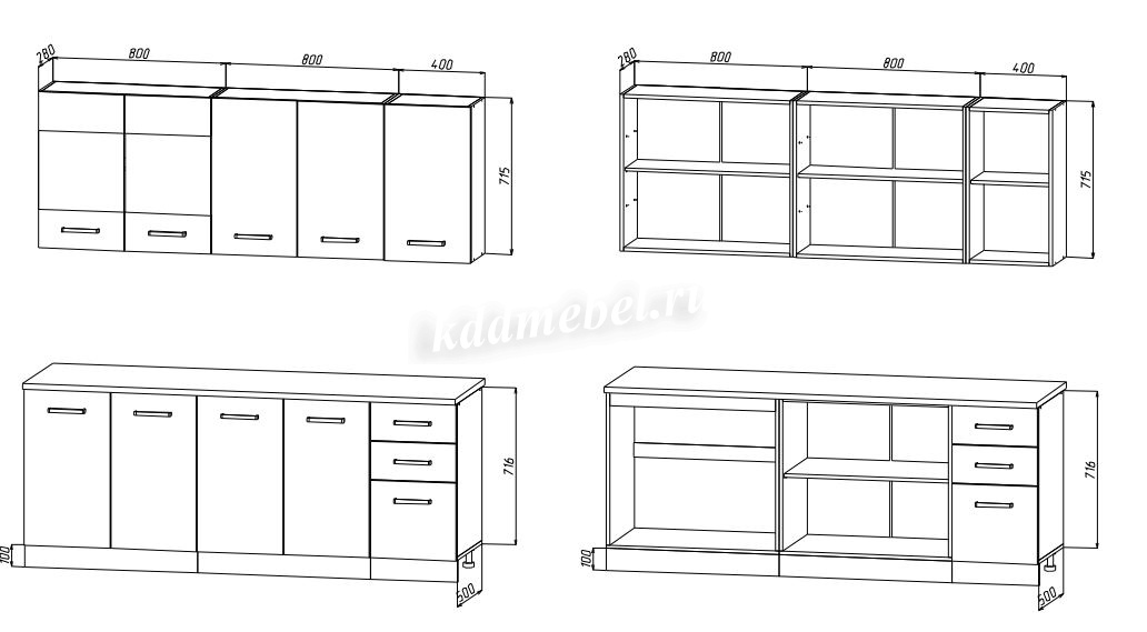 Шкаф верхний: 800Ш*715В*280Г