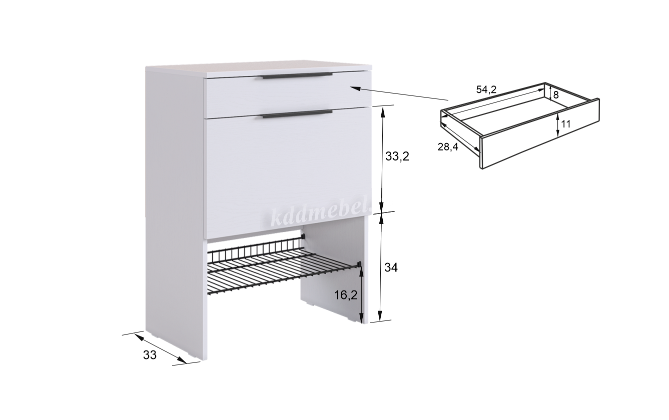 Обувница "Баско" — функциональное и стильное решение для организации вашего пространства. Эта обувница идеально подходит для прихожей, помогая поддерживать порядок и аккуратность. Изготовленная из прочного ЛДСП толщиной 16 мм, обувница обеспечивает надежность и долговечность. Выкатной ящик на шариковых направляющих позволяет легко и плавно открывать и закрывать его, предоставляя дополнительное место для хранения мелочей.