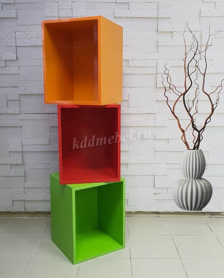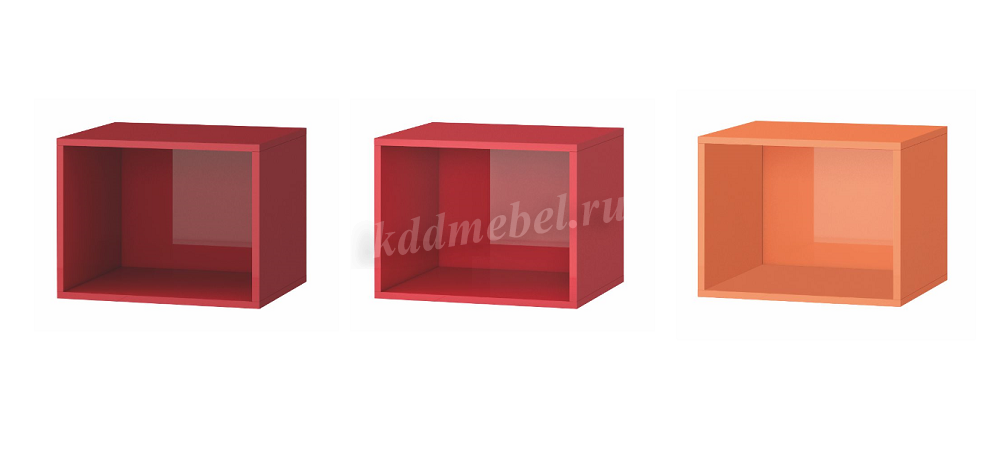 Высокие массивные металлические опоры, лицевая фурнитура с покрытием «Soft-touch». Серия может быть скомплектована вставными кубами цвета Бордо, Красный, Акрил мохито. Материал - высокоглянцевые панели «High Gloss».