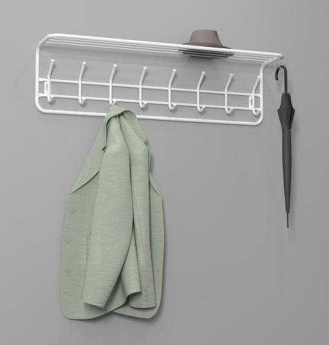 Настенная вешалка с удобной полочкой идеально подойдет для жилых и офисных помещений. Модель поможет удобно хранить не только верхнюю одежду, но и головные уборы.