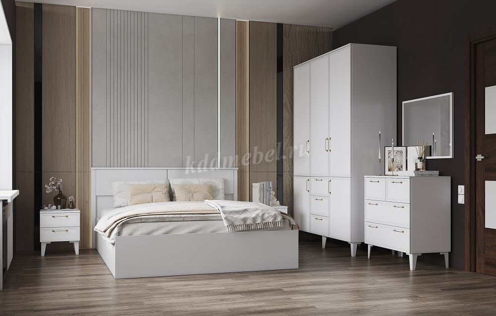 В исполнении корпуса ЛДСП Белый с тиснением «Древесные поры» - велюр белый,