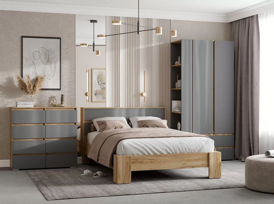 Модульная спальня Хелен (Крафт золотой/Графит серый)