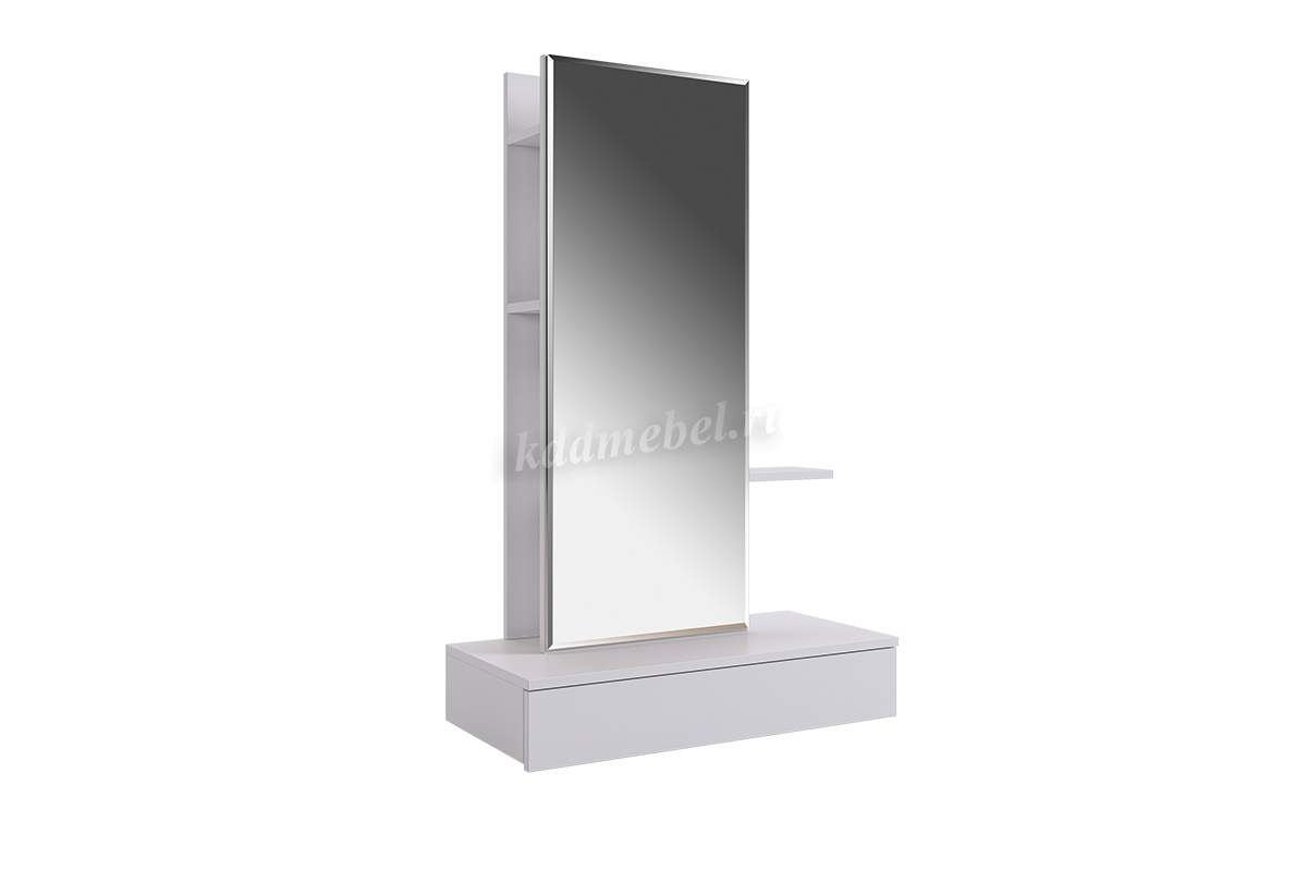 Сборка у трюмо универсальная. Зеркальную панель с полками можно установить ближе к левому либо ближе к правому краю. Так же полки за панелью крепятся в разных положениях.