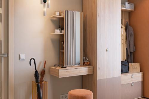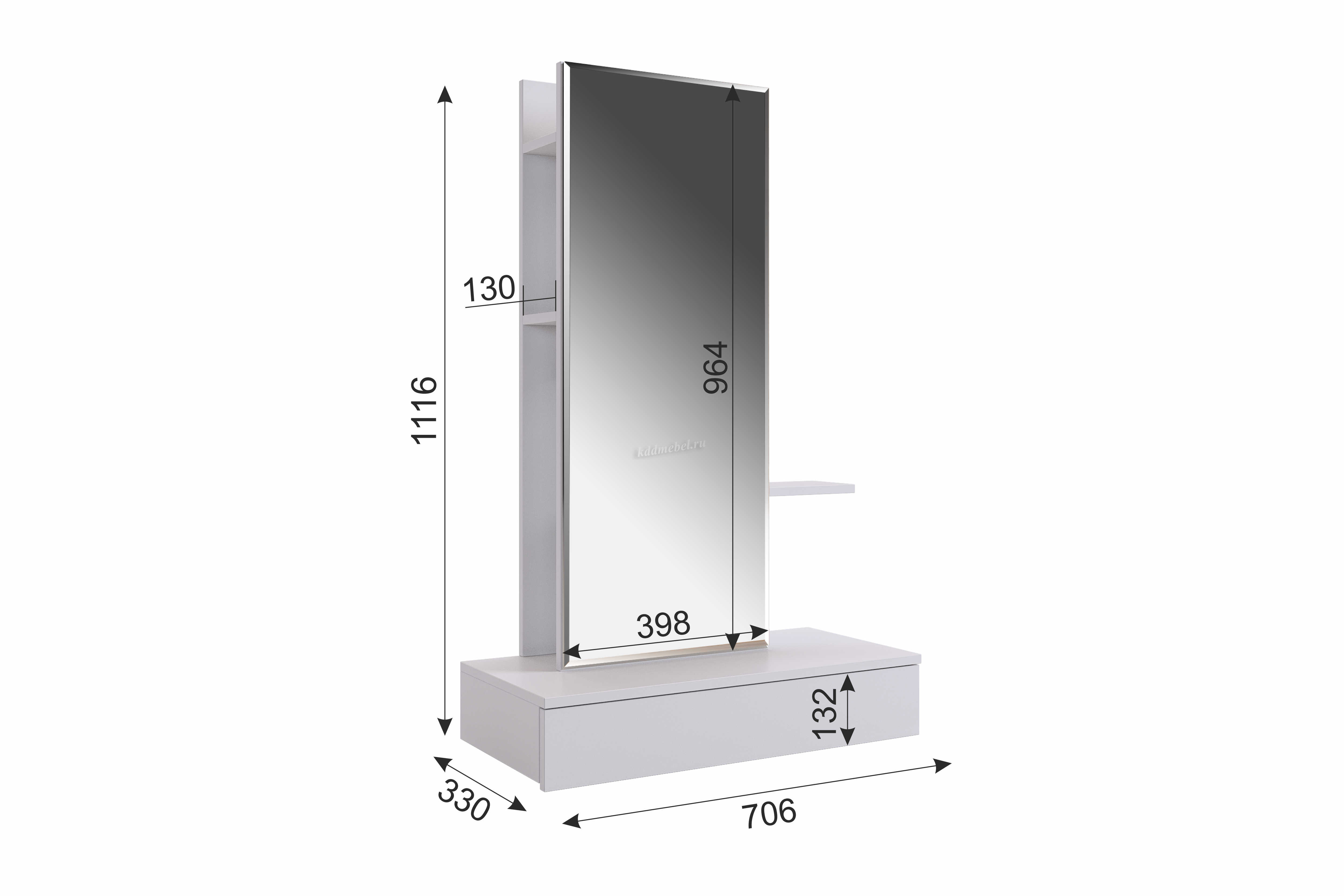 Способы установки полок смотреть в паспорте при сборке. Рядом с полками на задней панели предусмотрены стильный крючок для украшений или фена.