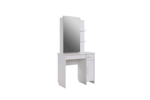 Состоит из: зеркала, полками открытыми и закрытыми, а также ящиками выкатными для мелочей
