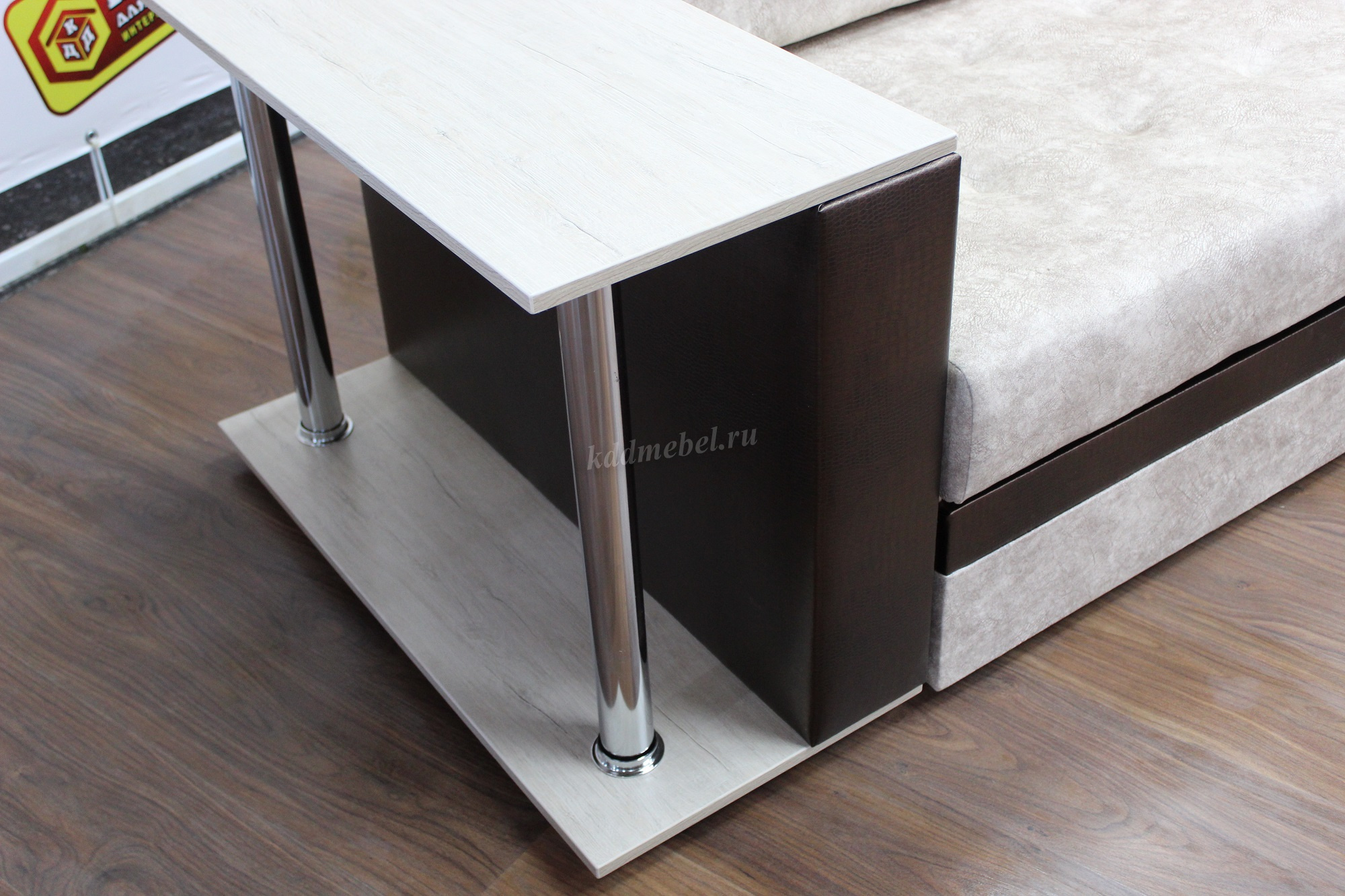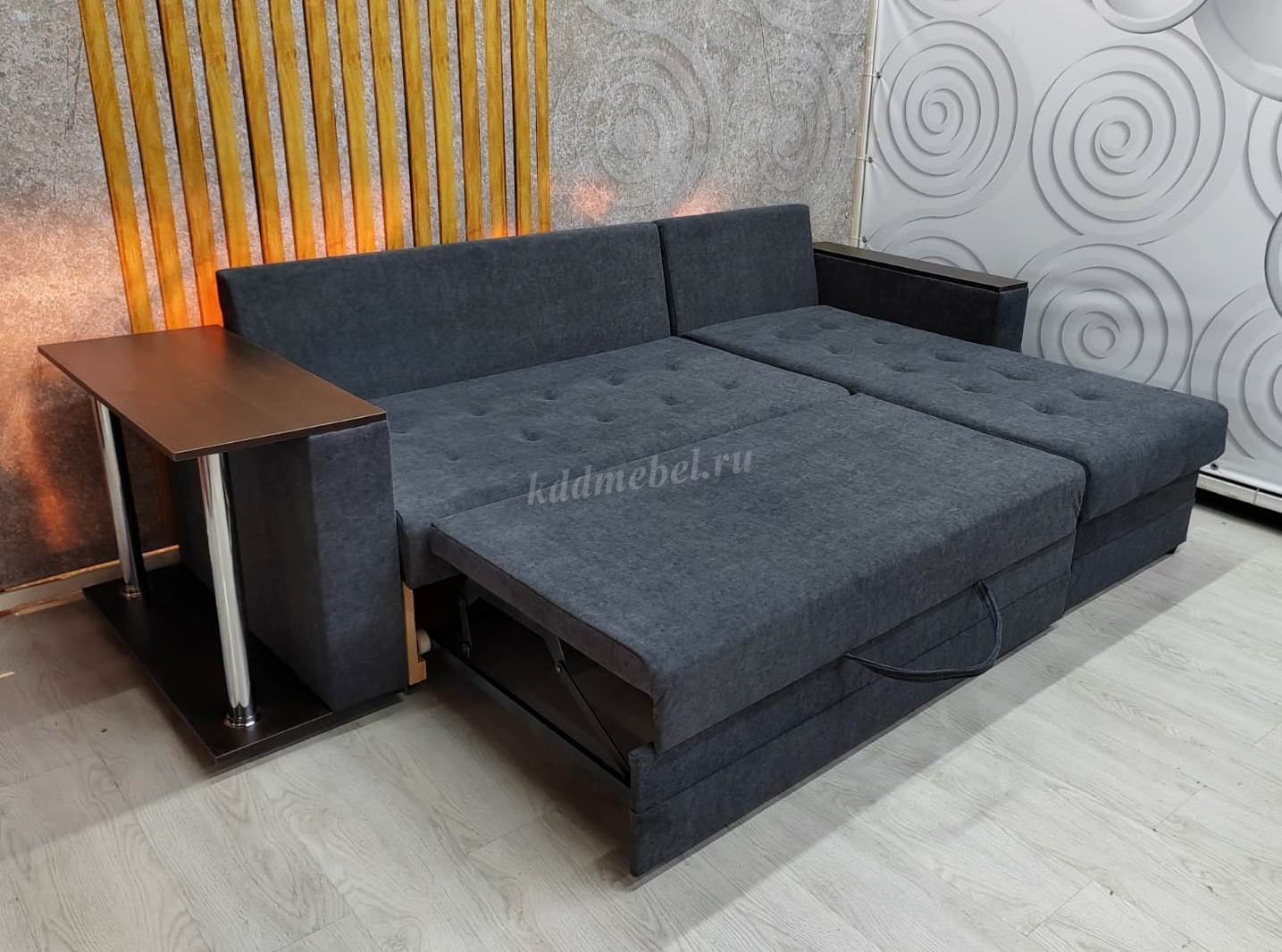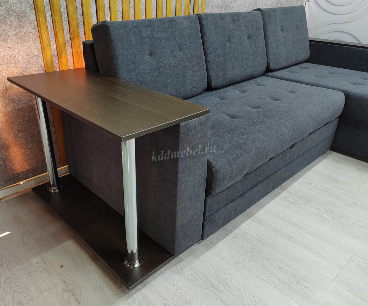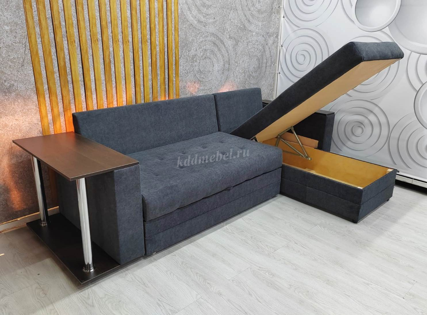 Угловой диван Атланта – яркий пример удачного сочетания элегантного стиля и функциональности. Характерная особенность модели – встроенный журнальный столик для особенно комфортного отдыха и элегантное сочетание рогожки и экокожи разных оттенков. Комплексный наполнитель способствует равномерному распределению веса во время эксплуатации. Диван оборудован вместительным ящиком для хранения белья и легко трансформируется в полноценное спальное место.