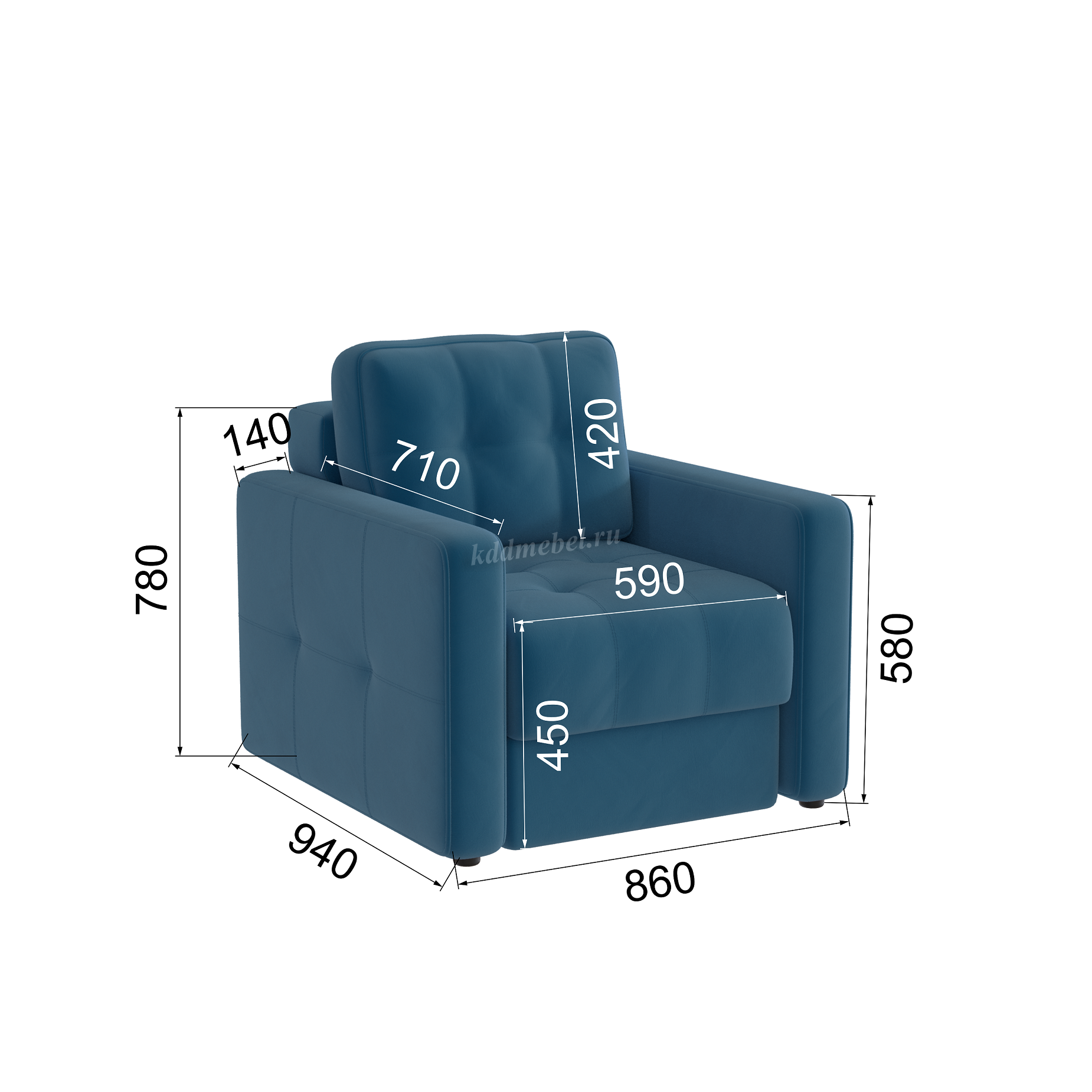 Подлокотники шириной 140 мм, обтянутые тканью и простеганные двойной отделочной декоративной строчкой.