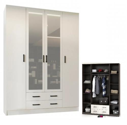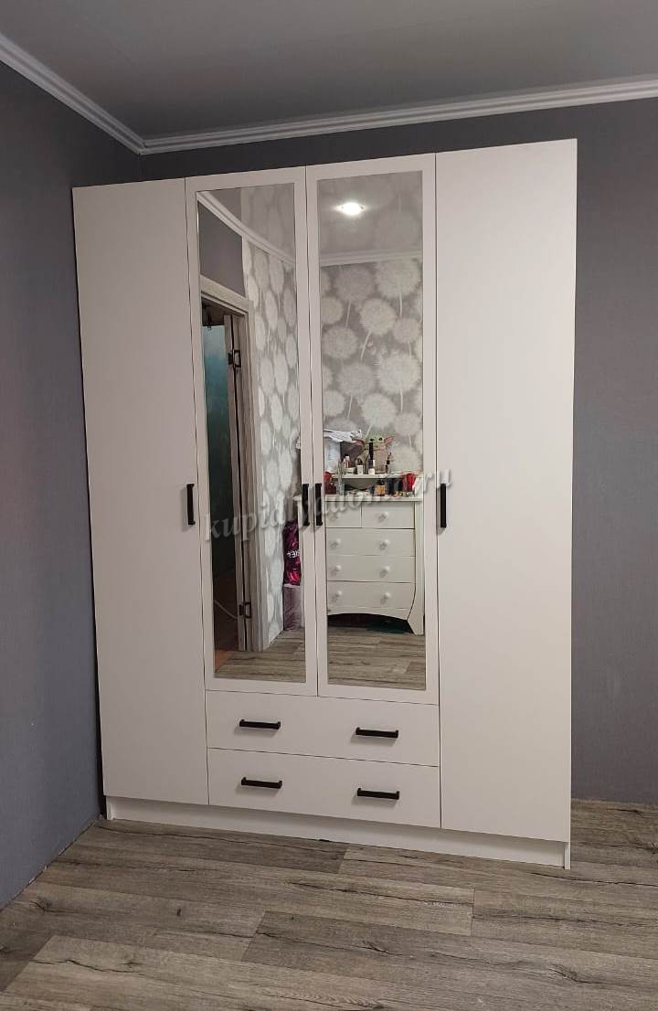 Вместительный четырехдверный шкаф "Нарцисс-3"с зеркальными фасадами — оптимальное решение для хранения одежды в спальне или прихожей. Изящное исполнение в лучших традициях стиля украсит интерьер и принесет в него уютные нотки. Внутреннее наполнение шкафа предусматривает просторные универсальные отделения для хранения белья и одежды. Посередине расположена платяная секция со штангой для вешалок, а по бокам находятся два отдела с полками.