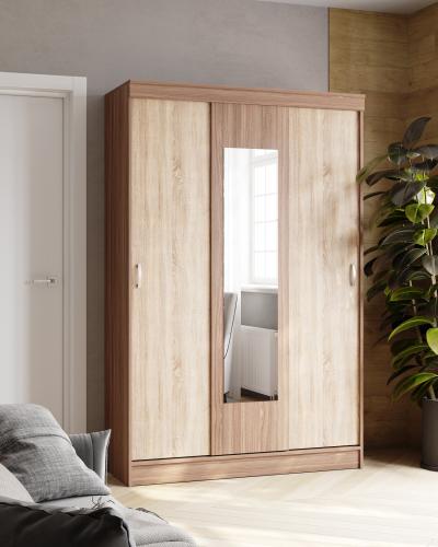 Шкаф-купе «Бася» с зеркалом – образец качественного и недорогого предмета мебели, который одновременно служит украшением интерьера и является местом хранения множества вещей.
