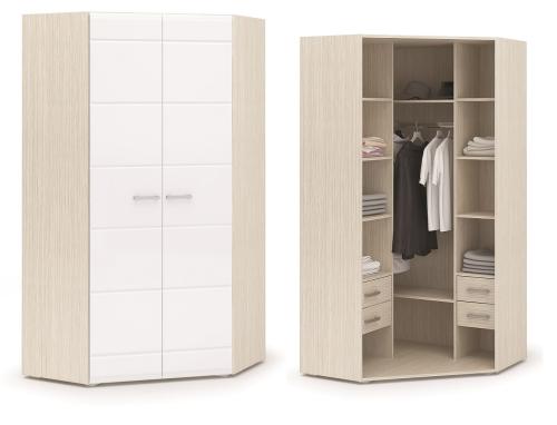 Описание Шкаф угловой Симба 2-х створчатый (Дуб белфорт/Белый глянец)