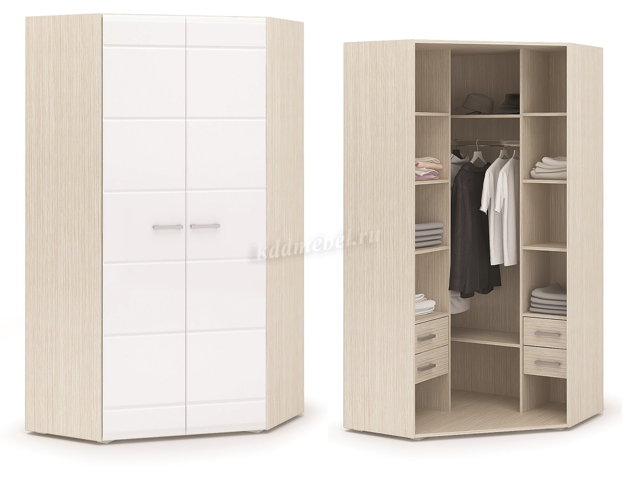 Шкаф угловой Симба 2-х створчатый (Дуб белфорт/Белый глянец) наличие товара: