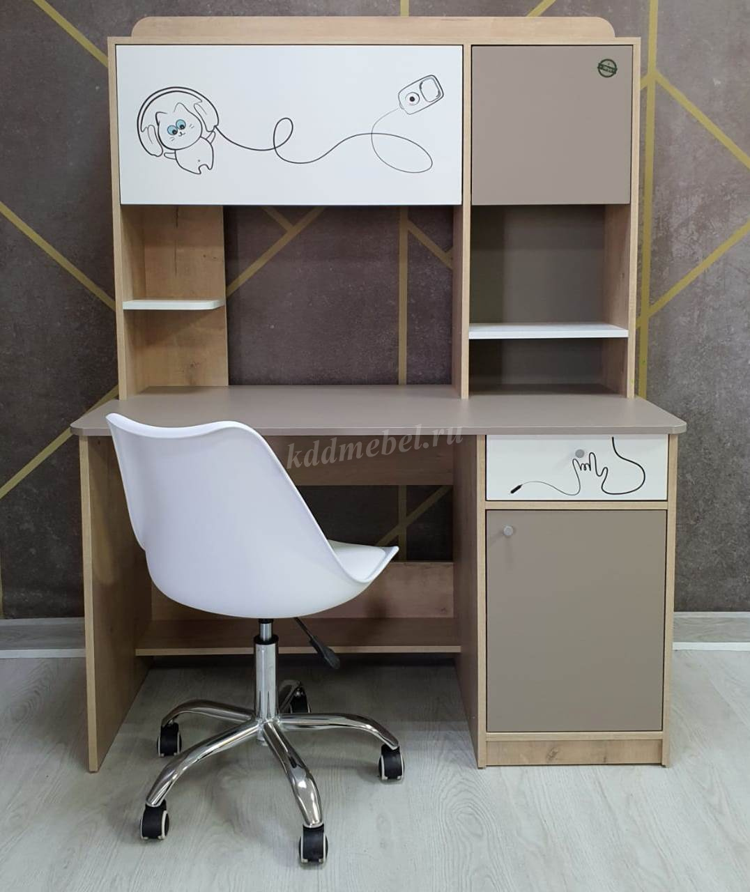 Стол компьютерный Котофей (Дуб ирландский/Белый/Мокко) наличие товара: