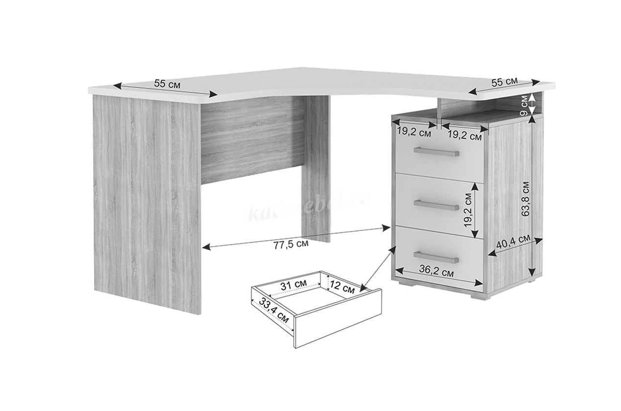Компьютерный стол Лайт-2 угловой элегантное и практичное решение для тех, кто ценит комфорт и функциональность. Данная модель идеально подходит для того, чтобы максимально эффективно использовать пространство и иметь всё необходимое под рукой, при этом сохраняя атмосферу стиля и уюта.